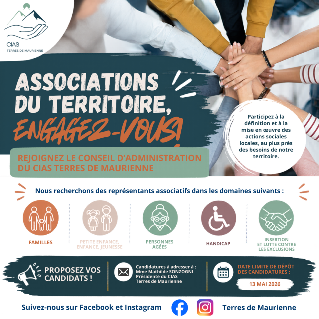 Dans le cadre du renouvellement de son Conseil d’administration, le Centre Intercommunal d’Action Sociale (CIAS) Terres de Maurienne lance un appel à candidatures à destination des associations du territoire.