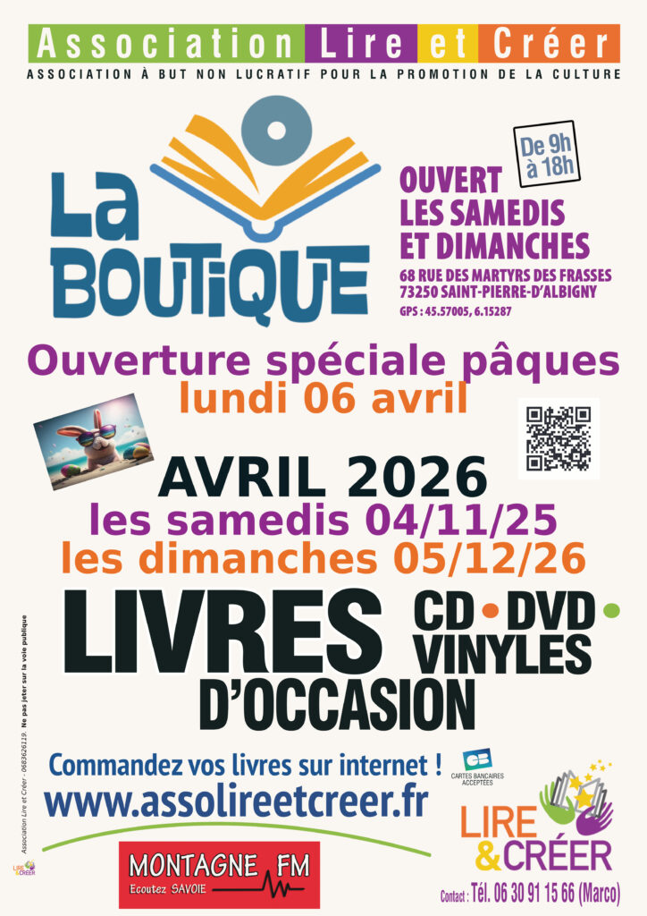 L’association Lire et Créer a le plaisir de vous informer de leurs prochaines dates d’ouverture.