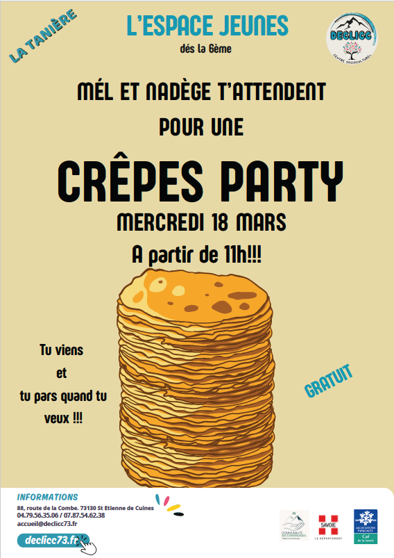 L’association DECCLIC vous convie à son événement Crêpes Party le 18 mars 2026. Il est ouvert à partir de la sixième. La participation est gratuite.